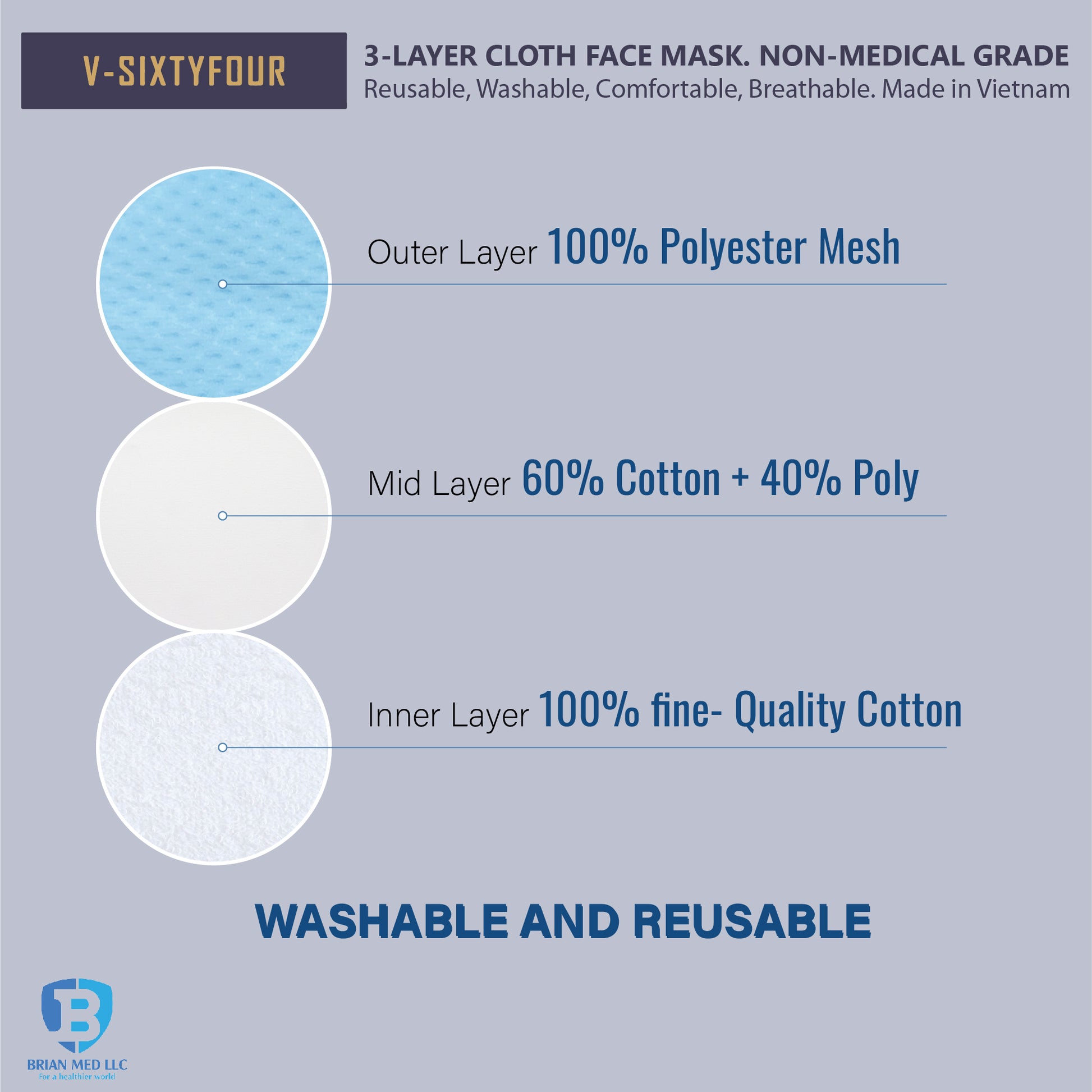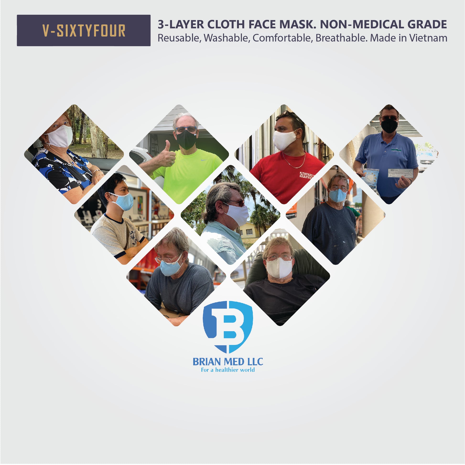 • The production process of V-sixtyfour masks is certified by the Vietnamese Ministry of Health.